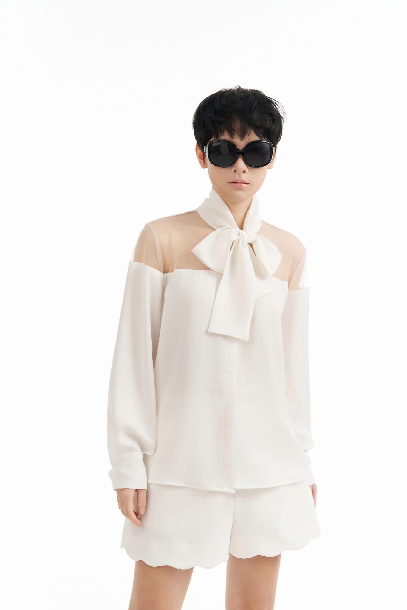 Cổ khăn phối lưới