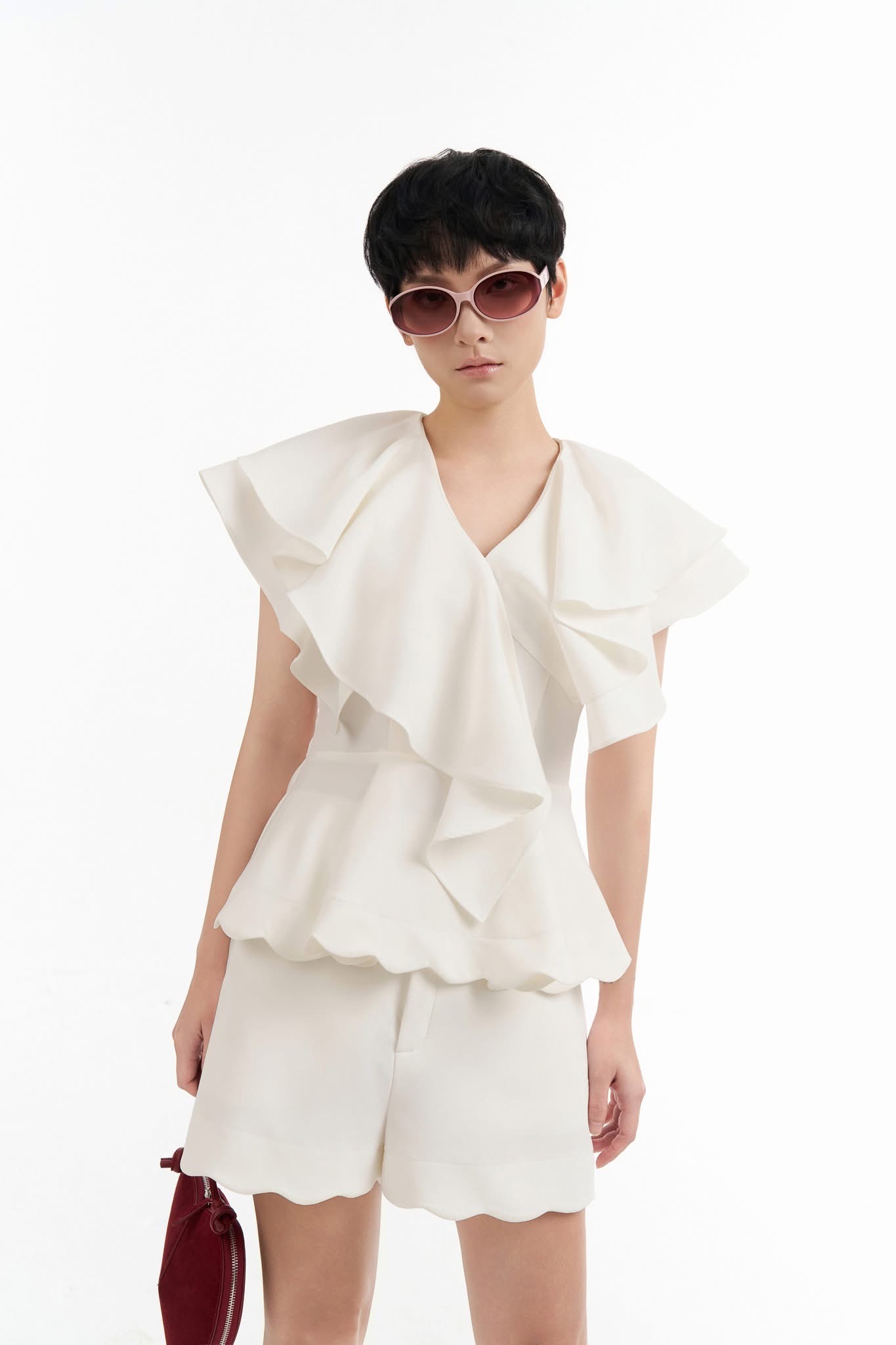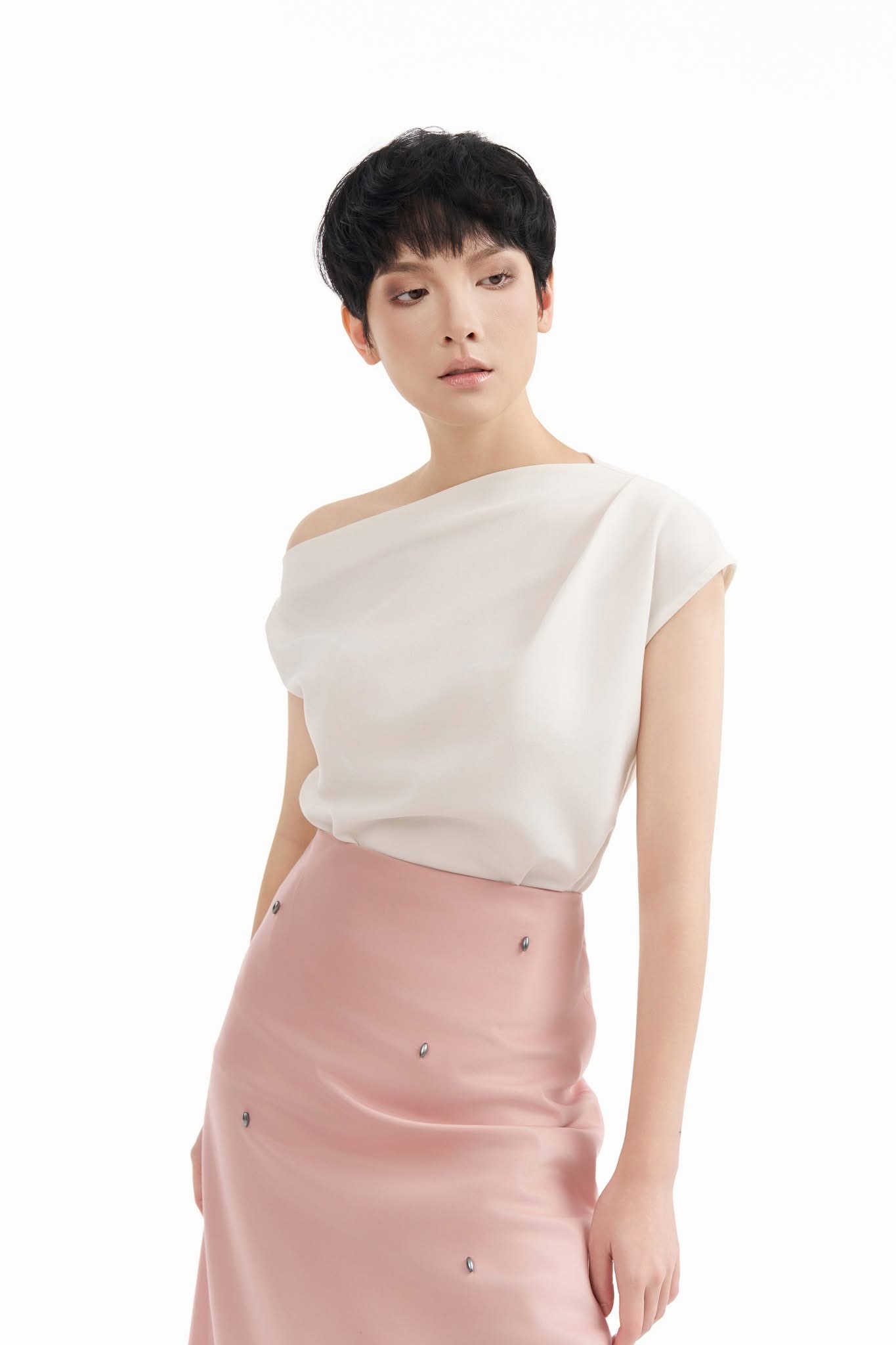 Áo lệch vai xếp ly