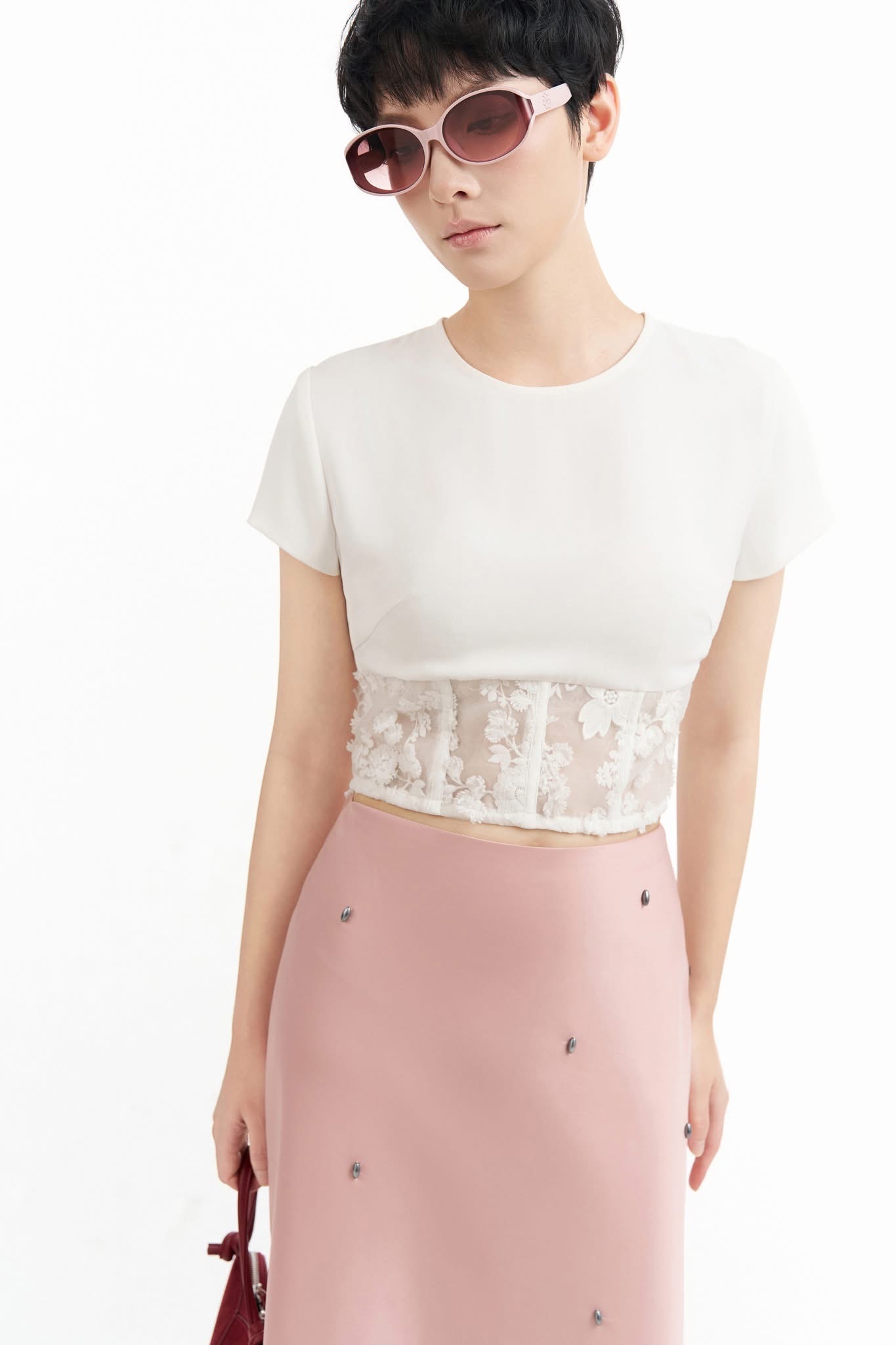 Crop nẹp ren lệch