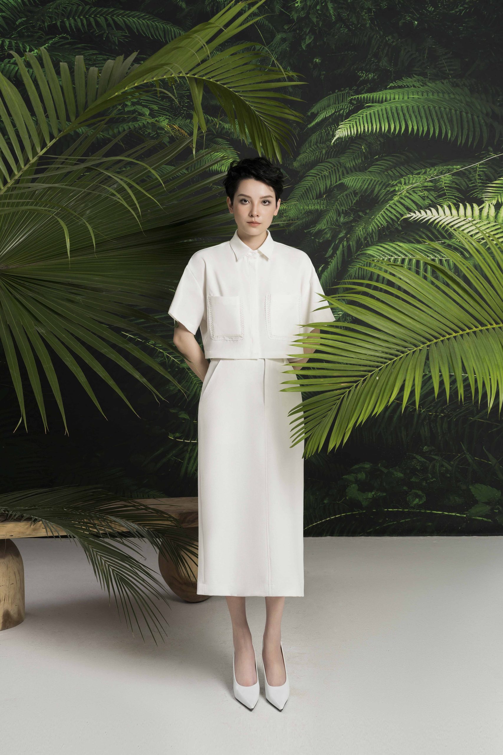 Chất liệu linen sợi pha đã được tính toán hạn chế nhăn, thoáng mát và đa dụng hơn. Tinh thần phụ nữ độc lập, phóng khoáng cũng được thể hiện qua thiết kế này một cách rõ nét.
