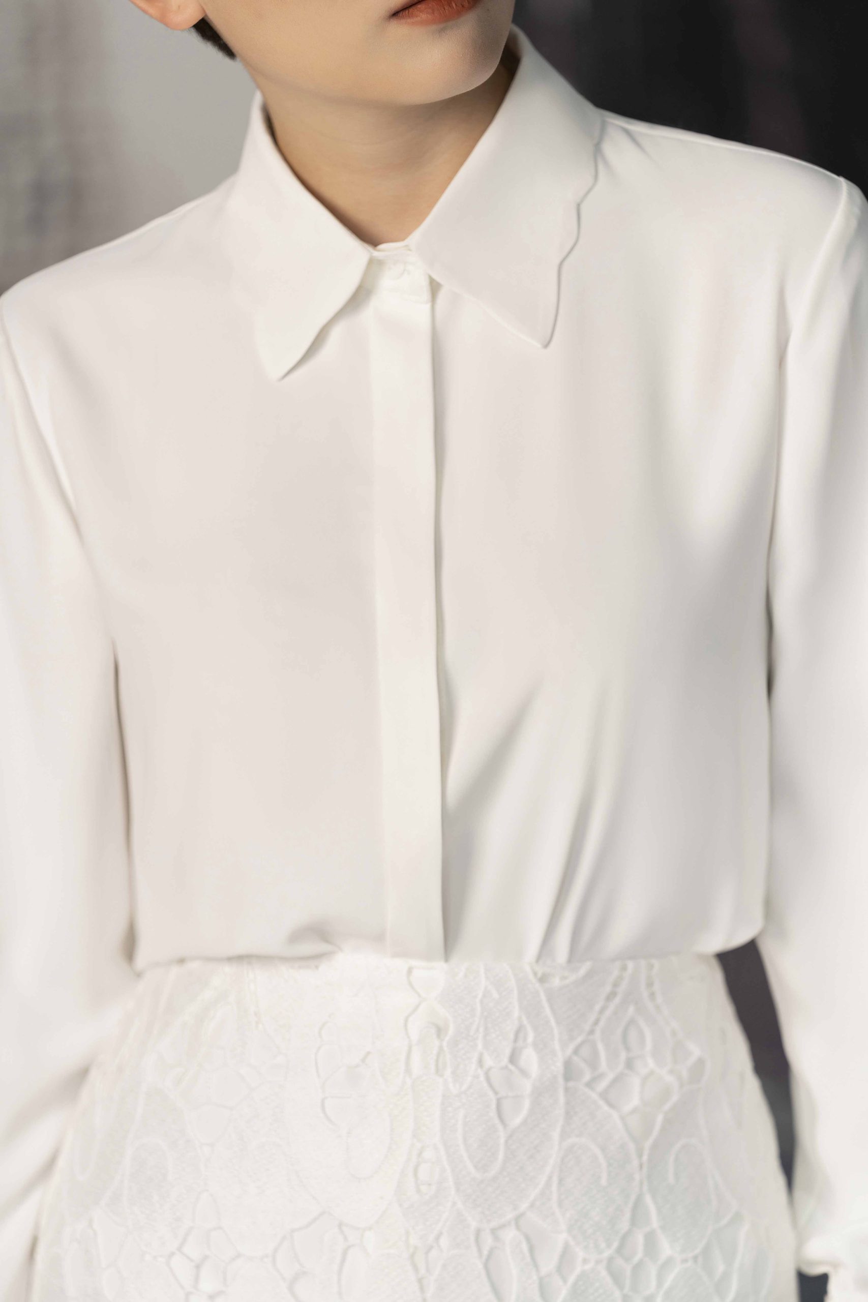Mẫu thiết kế đề cao sự tinh giản, tinh tế. Form áo basic với những điểm nhấn chi tiết tạo nên sự khác biệt.